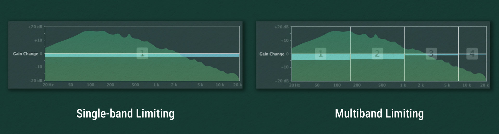 Instead of being limited to processing in one or more discrete frequency bands, CEDAR Spectral Limiting calculates continuously varying EQ profiles across the three dimensions of frequency, level and time.